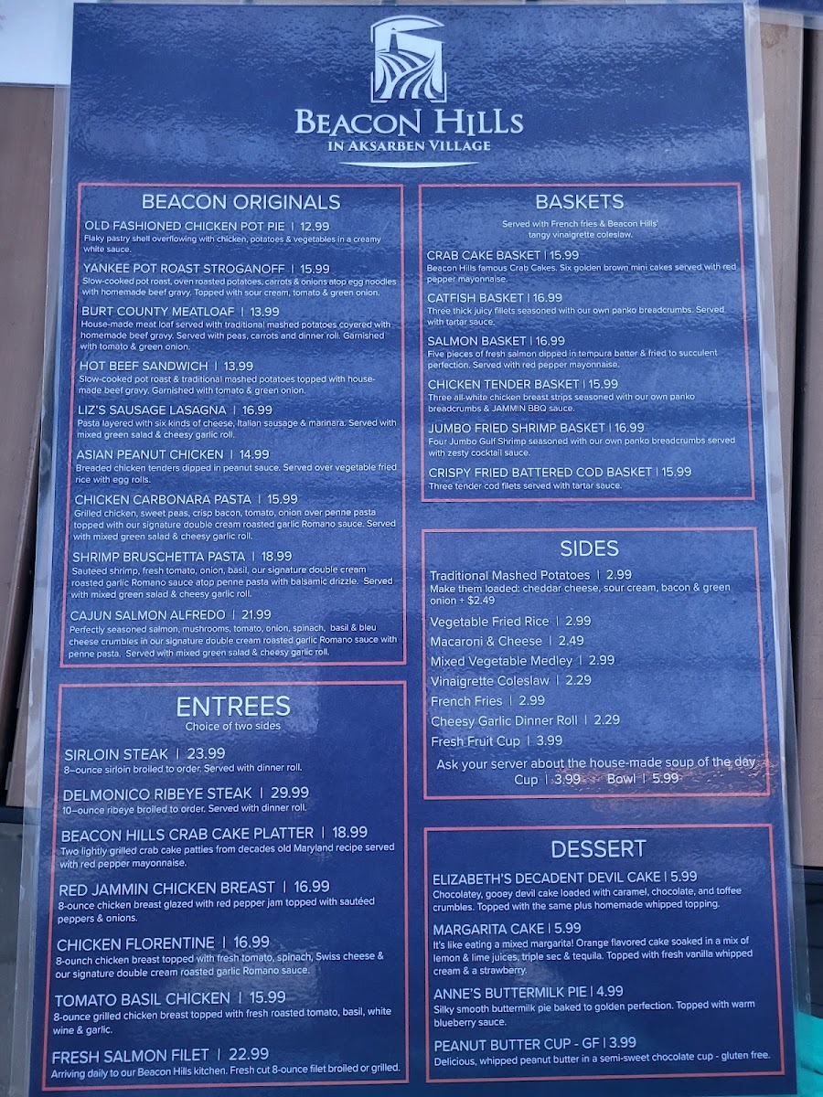 The menu at Beacon Hills in Aksarben Village offers a comforting blend of classic American dishes with a relaxed, approachable style. Perfect for casual lunches, laid-back dinners, or gatherings with friends, the selection balances hearty meals and familiar flavors with thoughtful touches that elevate everyday dining.